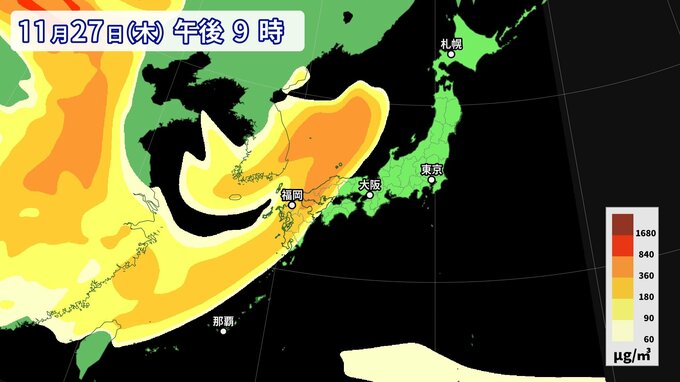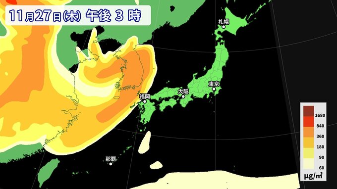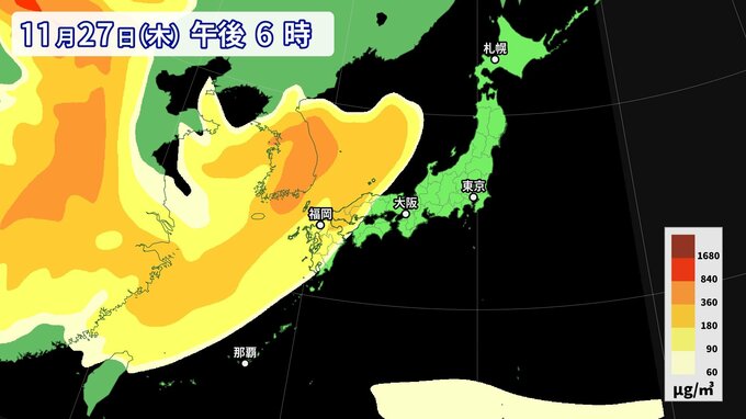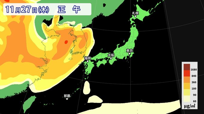 【黄砂情報】11月なのに黄砂…26日にかけて西日本から南西諸島の広い範囲に影響か 週後半にも再び飛来の可能性【最新・黄砂シミュレーション】