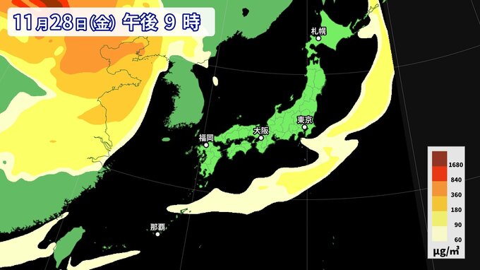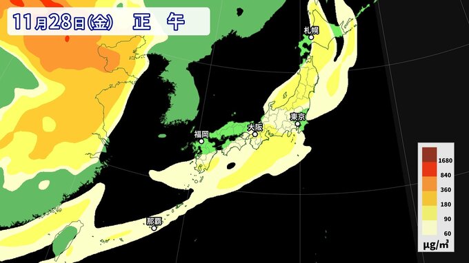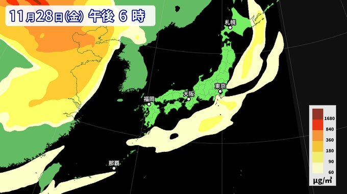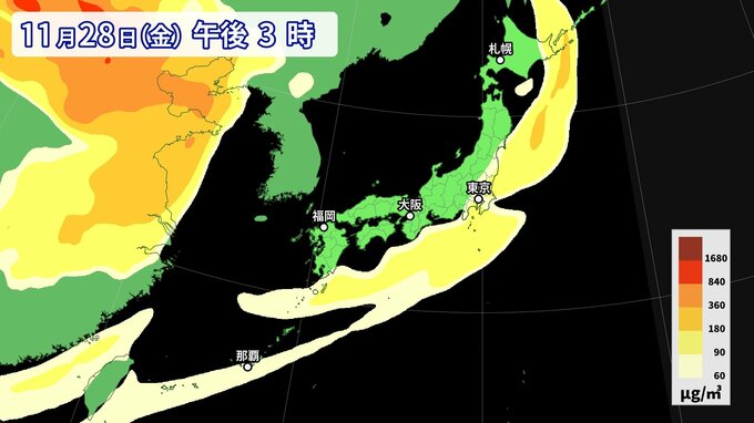 【黄砂情報】11月なのに黄砂…26日にかけて西日本から南西諸島の広い範囲に影響か 週後半にも再び飛来の可能性【最新・黄砂シミュレーション】