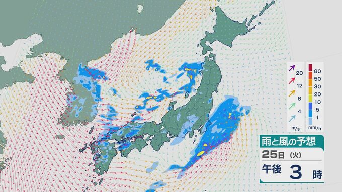 日本海と太平洋 “2つの低気圧”と“上空の強い寒気”で西日本から北日本まで大気の状態非常に不安定になり荒れる天気のところも 落雷や急な強い雨に注意を 雨と風シミュレーション 北陸放送 2025年11月25日(火) 09:39 国内 昼過ぎからは関東でも雨が降りそうです。夕方から夜にかけては日本海を進む低気圧の影響で、北陸や東北の日本海側では雨が強まる見込みです。
