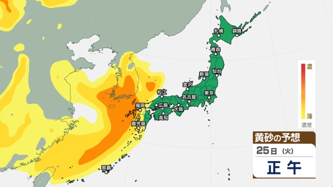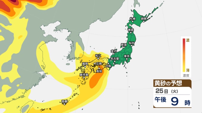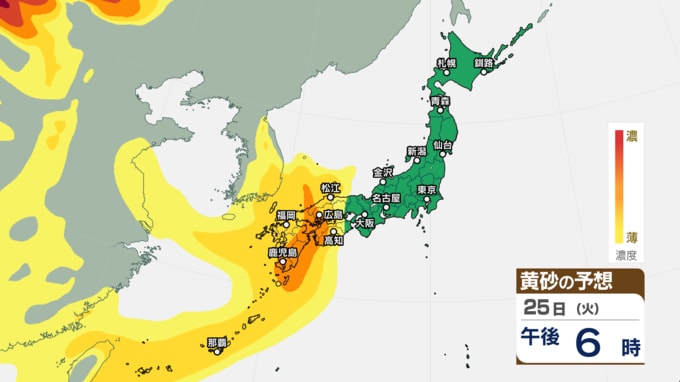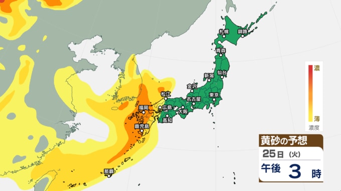 3. 【黄砂情報】あす26日にかけて南西諸島と西日本を中心に黄砂が飛来か  アレルギーや呼吸器系疾患の人は注意を【黄砂の最新シミュレーション・25日午前11時現在】