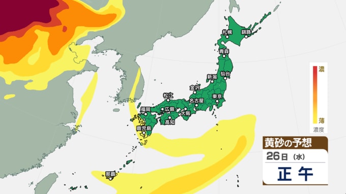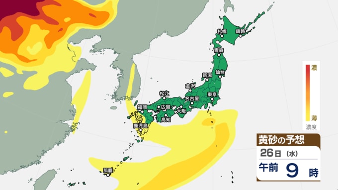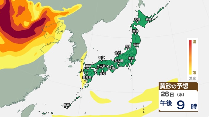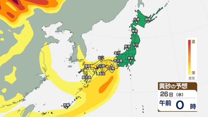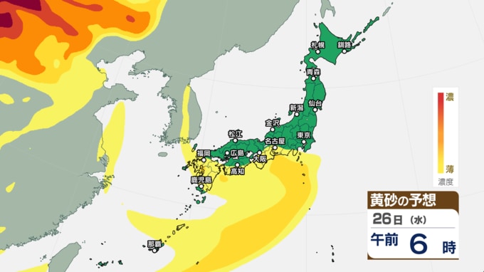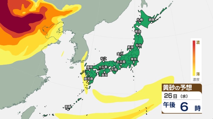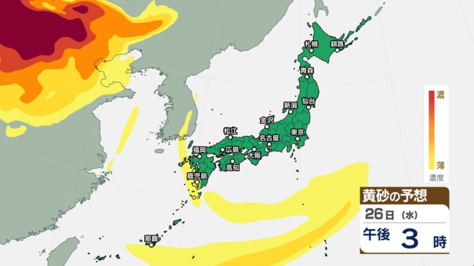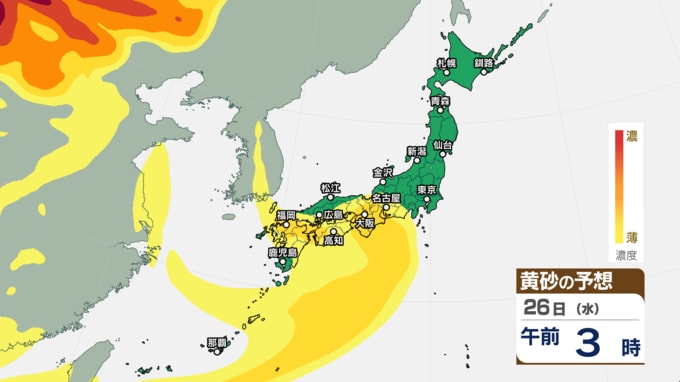3. 【黄砂情報】あす26日にかけて南西諸島と西日本を中心に黄砂が飛来か  アレルギーや呼吸器系疾患の人は注意を【黄砂の最新シミュレーション・25日午前11時現在】