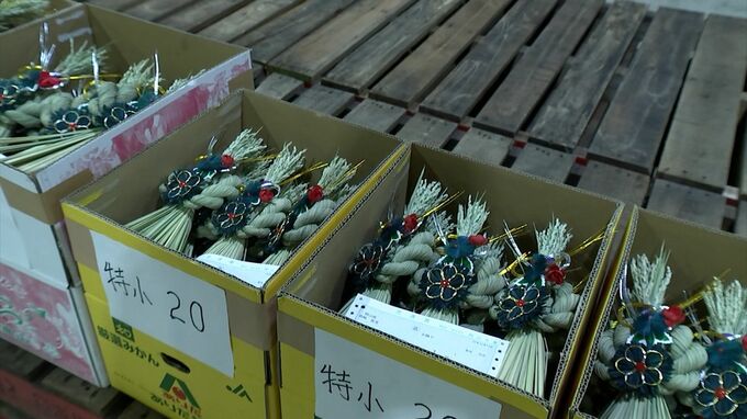 新しい年の年神様を迎える目印となる正月飾り。県内のスーパーなどに並びます。