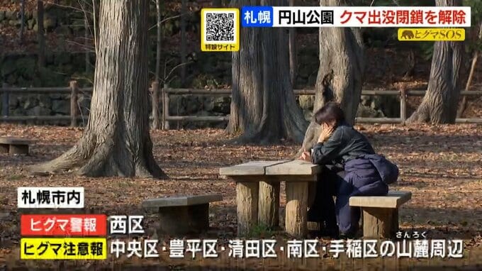 現在、円山公園がある札幌市中央区など市内の5つの区に「ヒグマ注意報」、西区には「ヒグマ警報」が発表されていて注意が必要です。