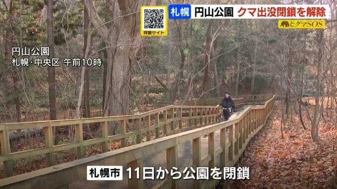 札幌市中央区の円山公園は隣接する円山動物園や周辺でクマが出没したため、札幌市は、11日から公園を閉鎖し利用者の立ち入りを規制していました。