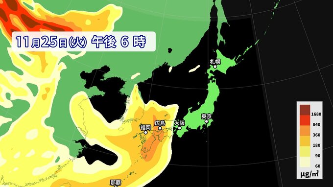 25日から26日にかけて、西日本から南西諸島の広い範囲で黄砂が予想されています。