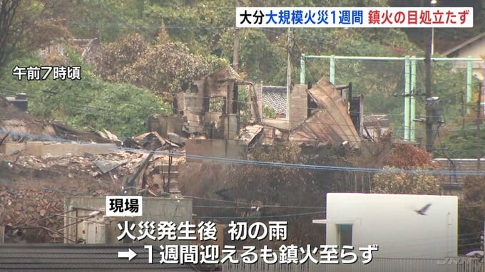 大分市佐賀関の大規模火災は発生からきょうで1週間となりますが、依然、鎮火のめどは立っていません。大分市佐賀関で発生した大規模火災では住宅などおよそ170棟が焼け、1人が死亡しました。けさ現地では火災の発…