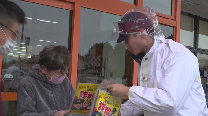 多くの企業で給料支給日のきょう25日、甲府警察署が電話詐欺被害への注意を呼びかけました。この街頭活動は多くの民間企業の給料支給日に合わせて行われ、甲府署の署員がスーパーの入り口でチラシなどを配りました。