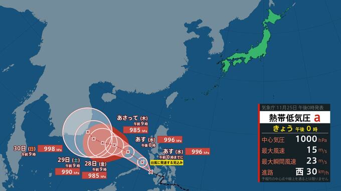 進行方向、速さ 西北西 20 km/h (10 kt)
