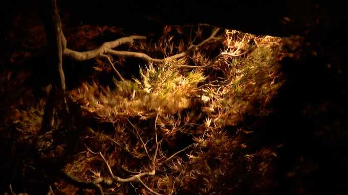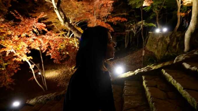 昼間とは全く違う神秘的な表情を見せる紅葉です。