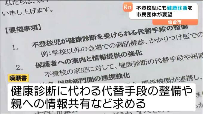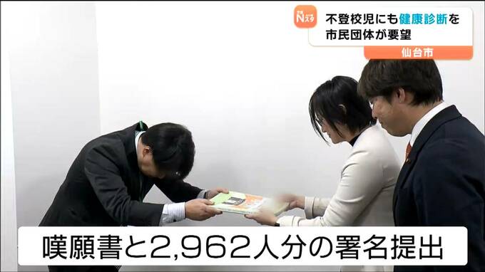 不登校の子どもたちも健康診断を受けられるよう、親などで作る団体が、仙台市教育委員会に対し、代替手段の整備などを求める署名を提出しました。