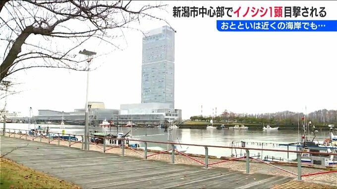 新潟市 中央区の信濃川沿いで25日未明、イノシシ1頭が目撃されました。けがをした人はいませんが、目撃された場所は散歩コースにもなっていて、警察が注意を呼びかけています。【記者リポート】「柳都大橋がかかる…