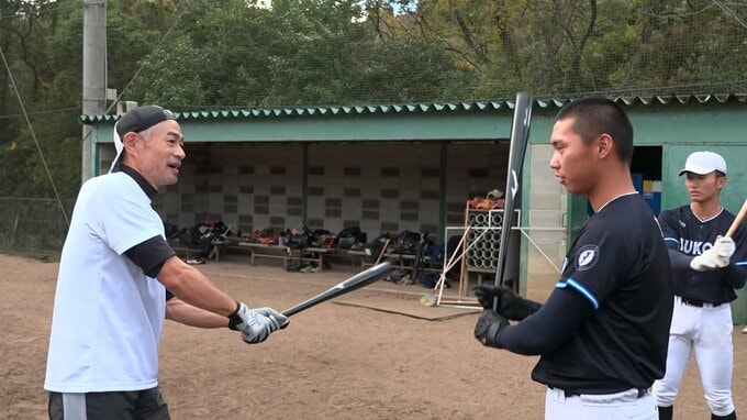 イチローさんと入れ替わり打席に立ったのは、牟禮選手。その打撃を見てイチローさんは「マジか!」を連発、使っているバットにも注目した。
