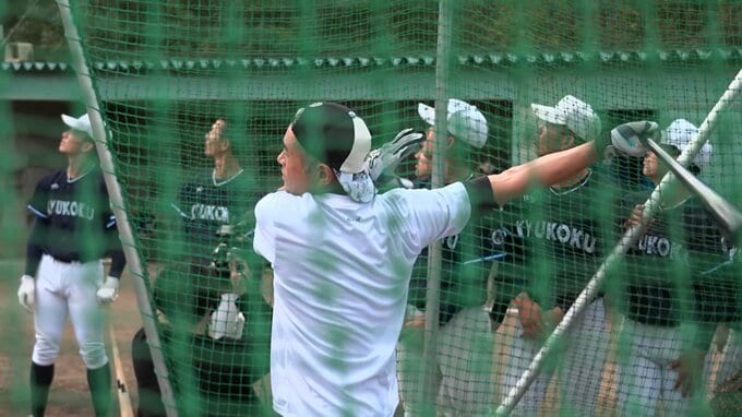 イチローさんのバットを借りて、打撃練習を行った牟禮選手。1スイング目でしっかりとボールを捉えたが、3スイング目で・・・。