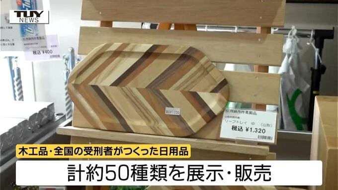 このほか、きょうはデザイン性の高い木工品や全国の受刑者が作った日用品など、あわせておよそ50種類が展示・販売されました。