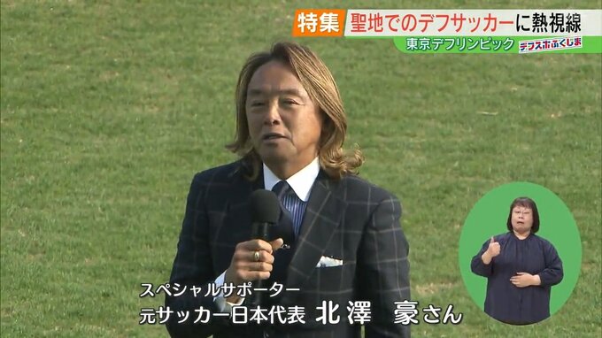 耳が聞こえない、聞こえにくい人たちのスポーツの祭典「東京2025デフリンピック」。14日、開幕日より一日早く始まったのは、Jヴィレッジが会場となっているサッカー競技。試合前のオープニングセレモニーには内堀知事も出席し、スペシャルサポーターを務める元サッカー日本代表の北澤豪さんが、選手たちにエールを贈りました。