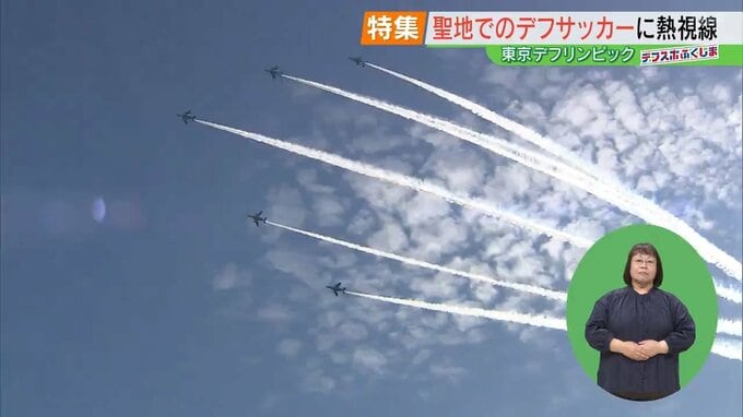 そして15日。迎えた、東京デフリンピックの開幕日。Jヴィレッジでは、航空自衛隊のブルーインパルスが福島の空で曲芸飛行を披露。開幕を祝うパフォーマンスに観客は沸きました。