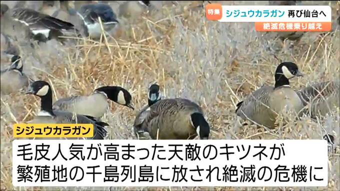 しかし、毛皮の人気の高まりから天敵であるキツネが、シジュウカラガンの繁殖地である千島列島に放されたことで多くが捕食され、その数は激減し、絶滅の危機に。