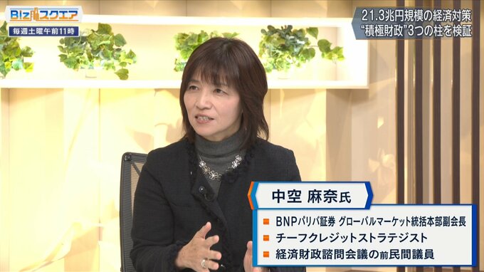 自民党の会合では、河野太郎元デジタル大臣が「コロナ禍でもなく、リーマンショックのような経済危機でもないのに、本当にこんなに財政出動していいのか」と苦言を呈したとのことだが、『BNPパリバ証券』グローバルマーケット統括本部副会長の中空麻奈さんも「明らかに大きな数字」と口にする。