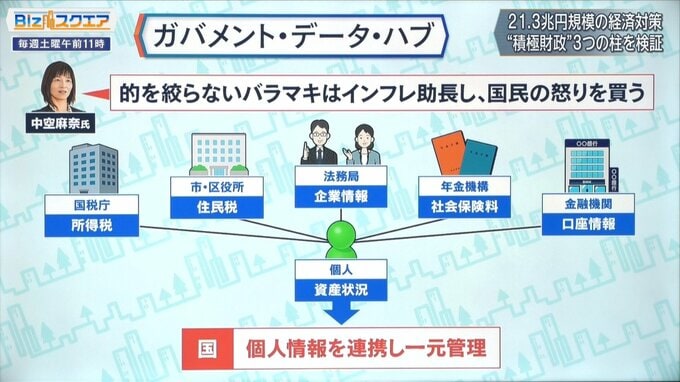 所得税や住民税などの税額、所属する企業の情報、資産状況など各機関がバラバラに持っている個人情報を連携し一元管理する【ガバメント・データ・ハブ】の構築が必要だと話す。