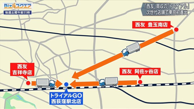 「トライアルGO」は、“西友の既存店舗の周辺に出店していく”計画で、今回オープンした東京・杉並区の店舗も近くの西友3店舗から商品を供給することで、豊富な品揃えと鮮度、そして低価格を維持できるという。