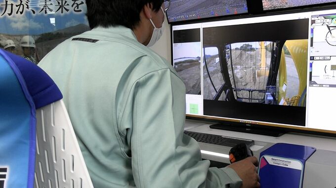 作業の効率化などに向けた取り組みです。岡山県笠岡市の工事現場で、遠隔で操作する建設機械を高校生が見学しました。
