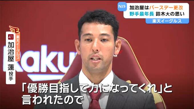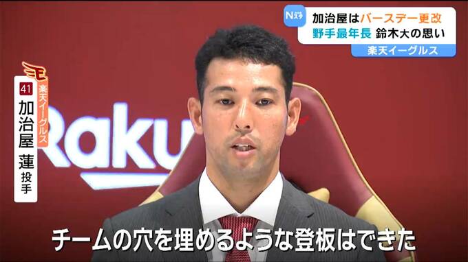 2024年に阪神から戦力外となり、再起をかけ楽天イーグルスに入団した加治屋投手。今シーズンは54試合に登板し、6月には16試合連続無失点を記録するなどリリーフとしてチームに貢献しました。