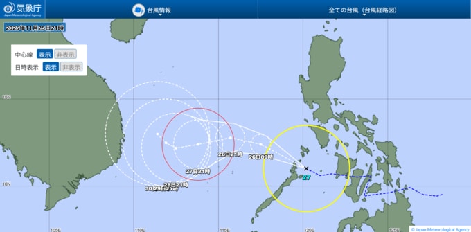 気象庁によると、24日(月)午前9時に発生した「台風のたまご=熱帯低気圧」が発達し、台風27号が発生しました。台風27号は、フィリピンの西を時速15kmの速さで西北西へ進んでいます。