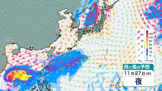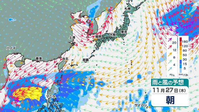 シミュレーションでは、台風27号が、フィリピンから西に向かう予想となっています。気象庁の進路予想では、南シナ海を西に向かうコースで、日本への影響はないでしょう。このシミュレーション画像は予想のひとつで、大きく変わる可能性があります。今後、気象庁から発表される情報に注意してください。