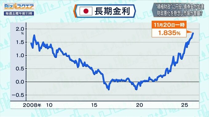 20日には長期金利の代表的な指標である「10年物国債」の利回りが一時1.835%まで上昇。“約17年半ぶり”の高い水準となった。