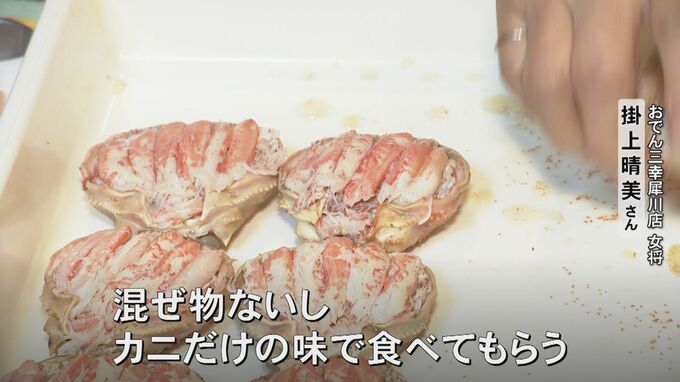 おでん三幸 犀川店 女将・掛上晴美さん「そのお店のやり方がありますから。うちは茹でたカニ1杯をそのままカニ面にするという形でしている。混ぜ物ないし、カニだけの味で食べてもらう」