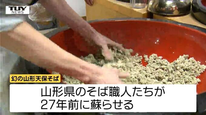 およそ170年前のそばの実を復活させた、幻とも呼ばれる「天保そば」の試食会が山形市で開かれ、「天保そば」のふるさと、福島県大熊町の人たちが特別な時間を楽しみました。