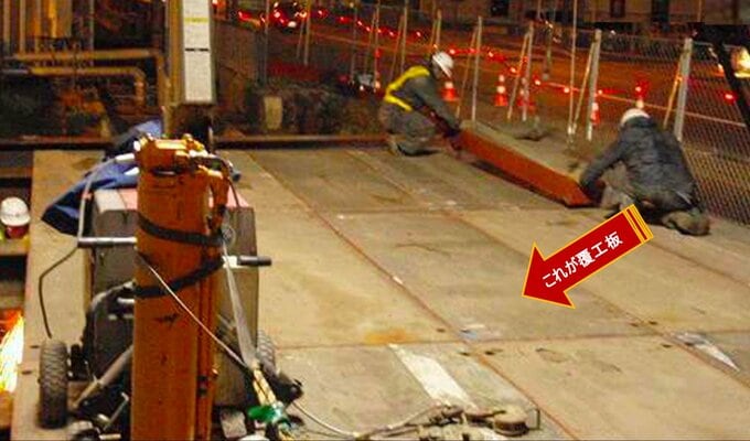 この地下鉄工事は「オープンカット工法」と呼ばれるもので、まず地下鉄路線を掘って、その上に屋根をかぶせる手法をとりました。1970年代の地下鉄はまだ浅いところを走っていたのです。その屋根が覆工板でした。