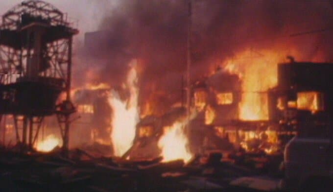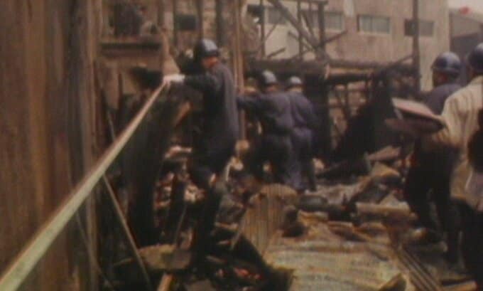 覆工板だけではありません。道路沿いの建物は吹き飛び、火災が次々と発生。夕方の買い物客や帰宅途中の人々を直撃し、現場は瞬時に炎と瓦礫の山に変わりました。