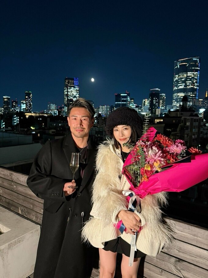 投稿された画像では、花束を抱えた矢沢心さんと、魔裟斗さんが夜景をバックに佇む姿が見て取れます。