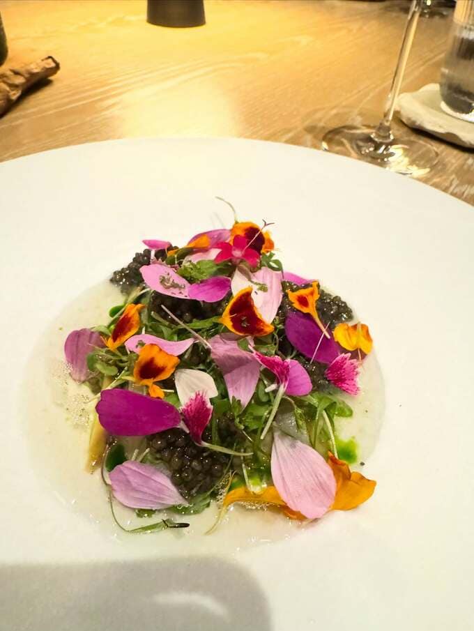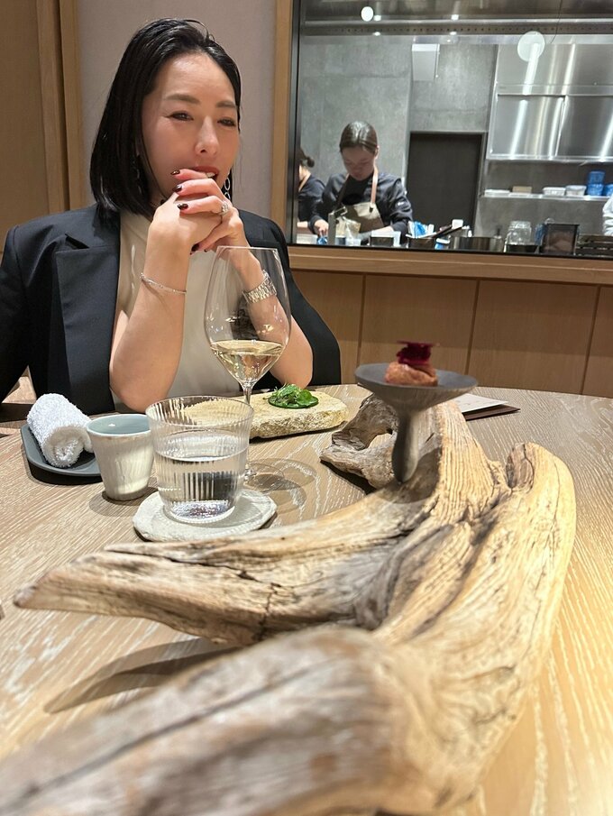 続けて「いい御夫婦♡と アポテオーズでディナー」「後ろでは デザートを作ってくださっています 前菜が揃うまでの心弾む時間♡」「料理と相性の良いワインを ペアリングしていただき 全て美味しくいただきました」と、記しました。