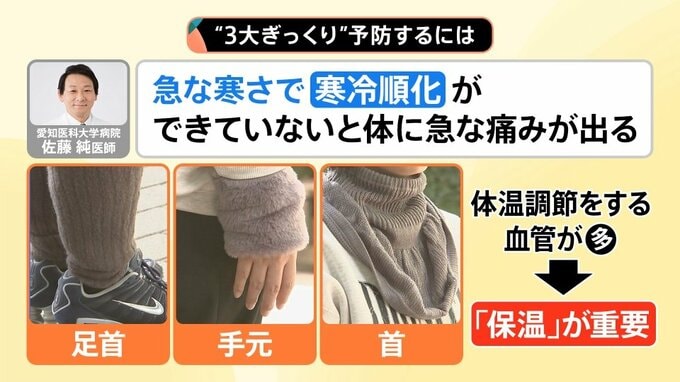 「急な寒さで寒冷順化ができていないと、体に急な痛みが出る」とのことです。