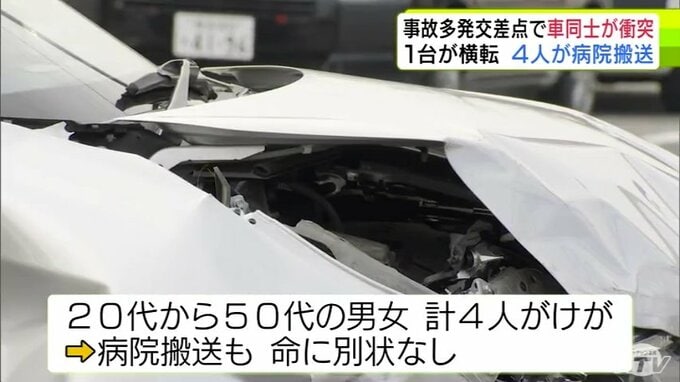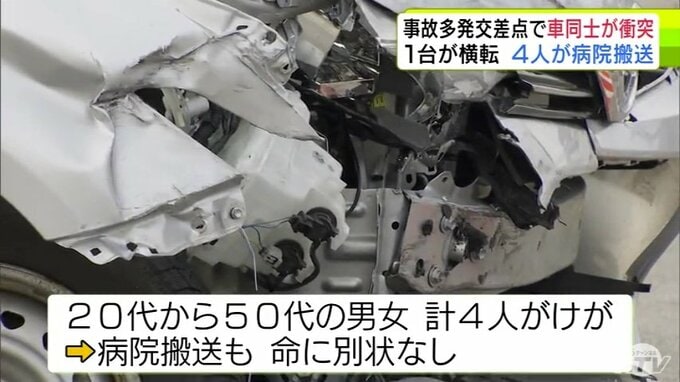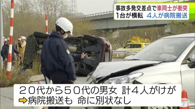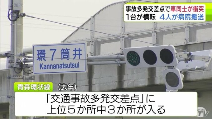 国道7号で車同士が衝突 1台は横転 もう1台は前方部分が大きく破損… 20代~50代の男女4人が病院搬送 いずれも命に別状なし 現場は『交通事故多発交差点』 青森県青森市 国道環状道路 青森テレビ 2025年11月25日(火) 21:20 国内
