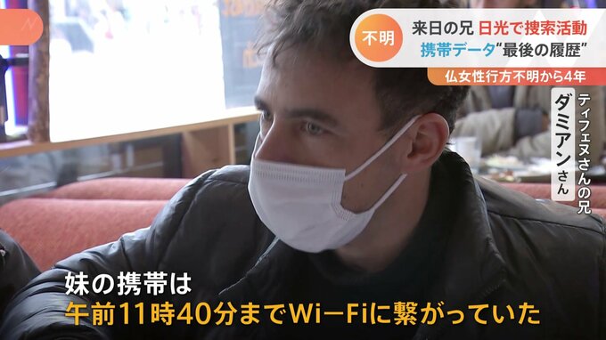 4年前、栃木県日光市で行方不明になったフランス人女性の兄が妹を探すために来日しています。新たに判明した手がかりを希望に、自ら現地を捜索しました。真冬並みの寒さとなったきょう、栃木県日光市の駅構内でチ…