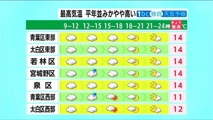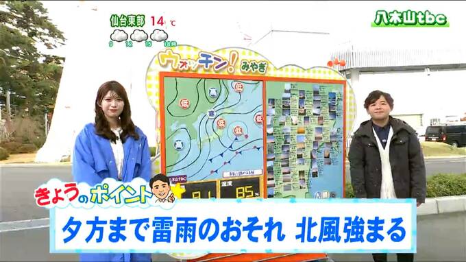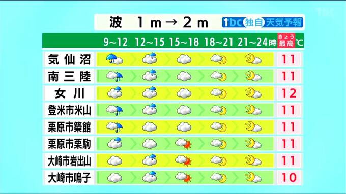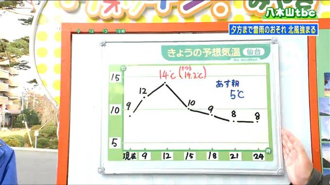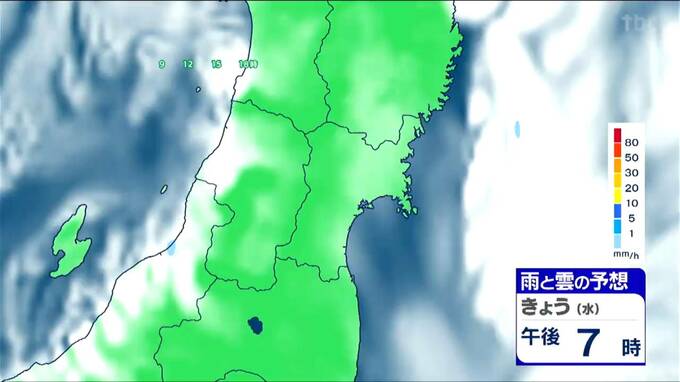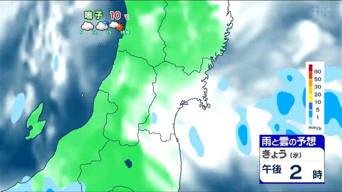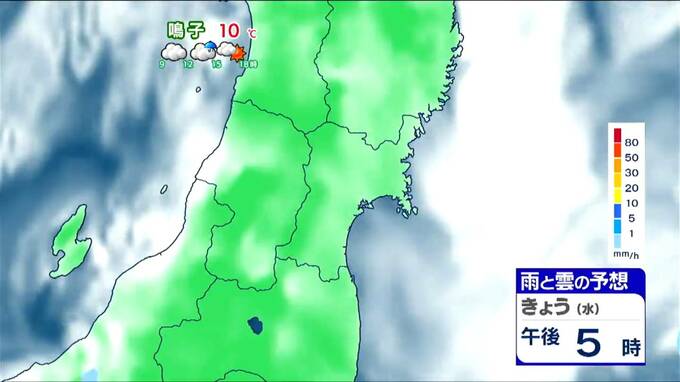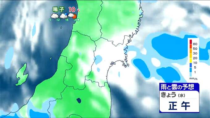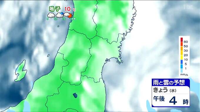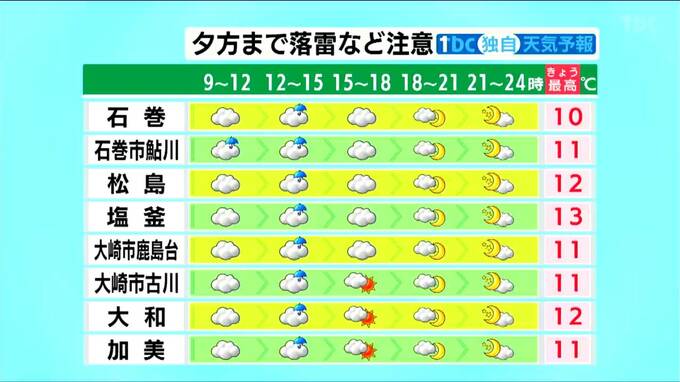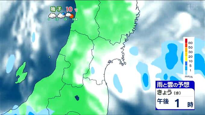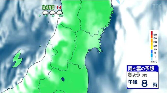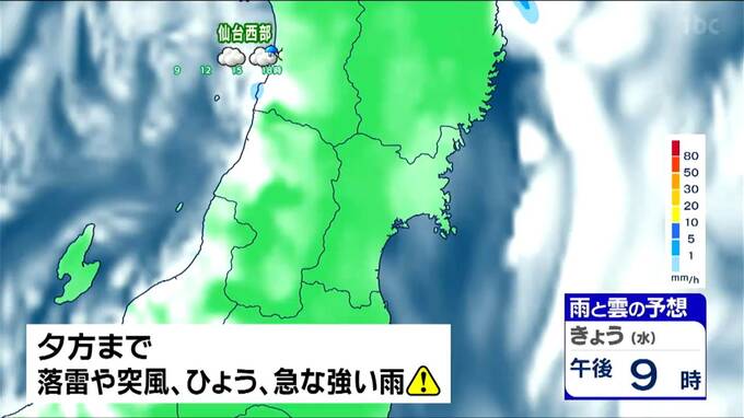 午前8時以降、気仙沼や栗原市内など県の北部を中心に雨が降りやすくなります。場合によっては局地的に雷雨となるおそれがあります。