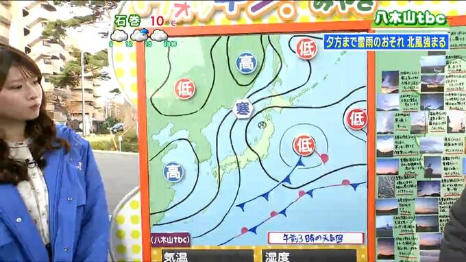 11月26日水曜日、宮城県内は大気の不安定な状態が続いており、夕方まで局地的な雷雨に注意が必要です。また、海上では北風が強まるため、午後3時頃まで強風に注意してください。