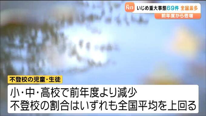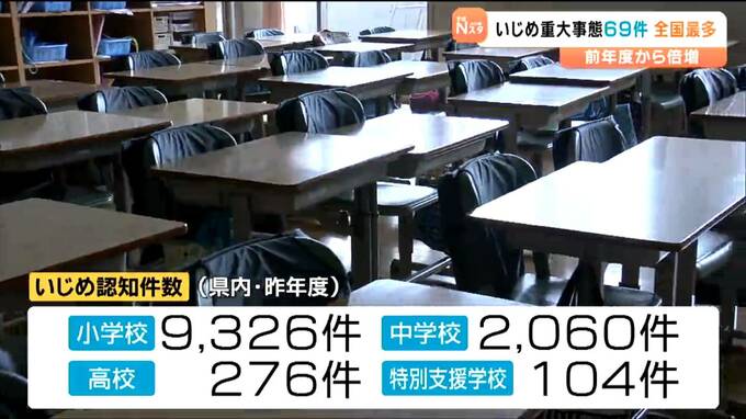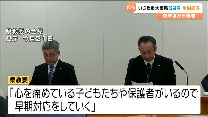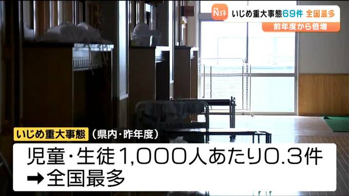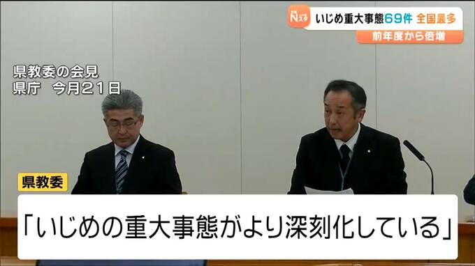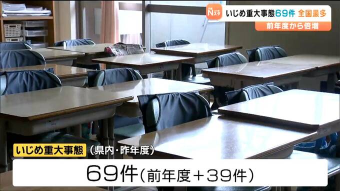 一方、2024年度、県内で発生したいじめ重大事態は69件で、前の年度を39件上回りました。