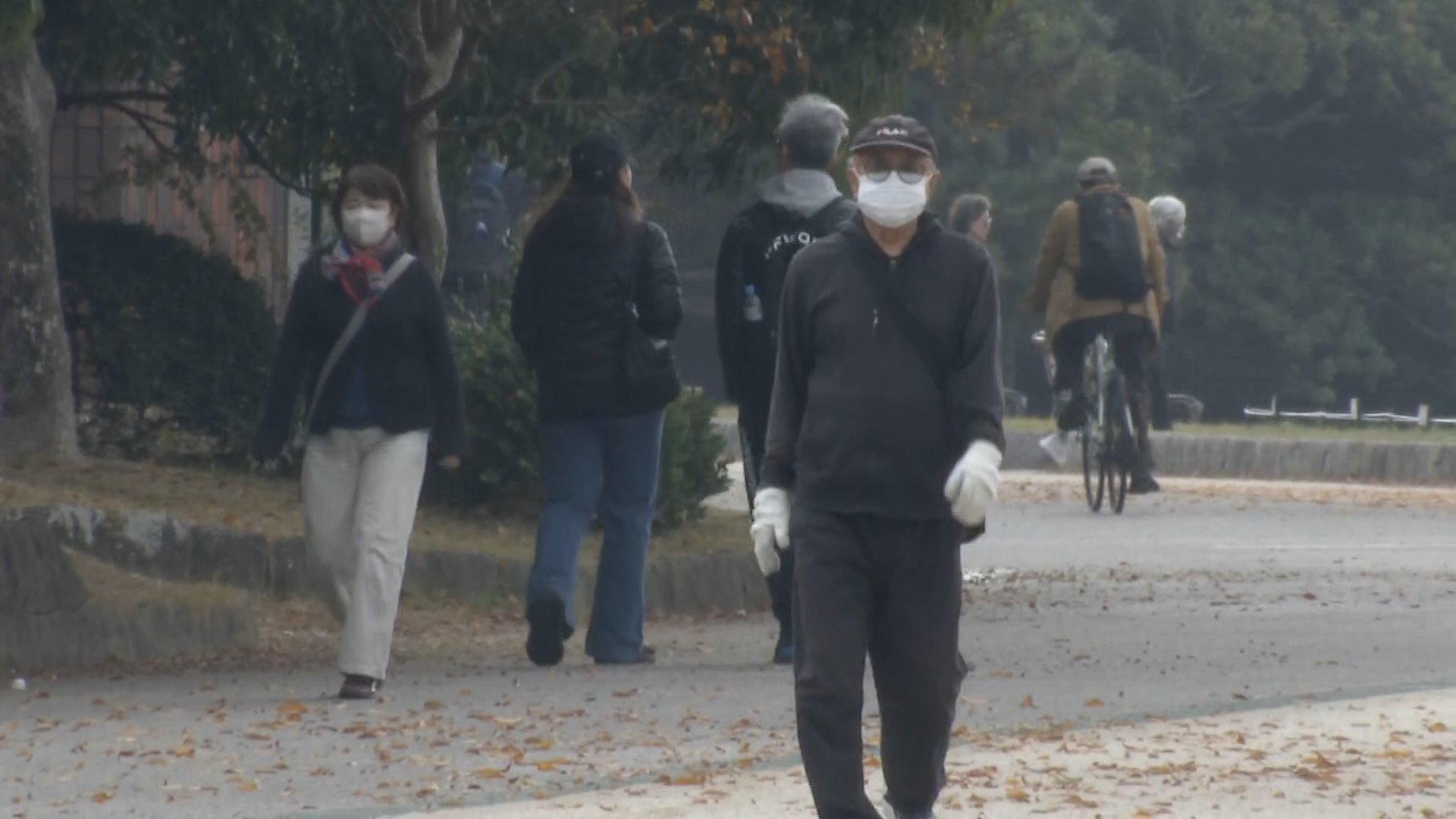 インフルエンザに加え、黄砂対策もあり、マスクを着用する人の姿が多く見られた、25日朝の福岡市。