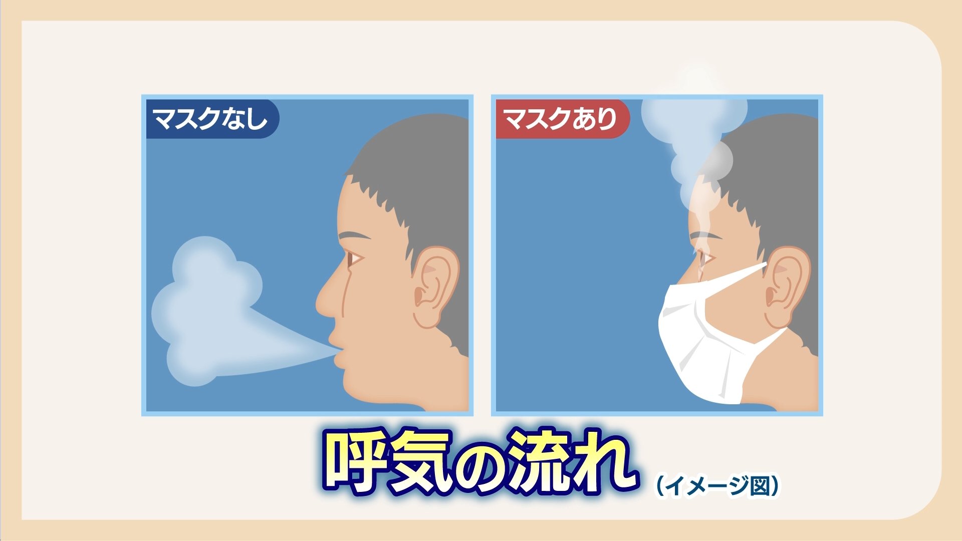 マスクを着用していない場合、呼気はまっすぐ前に放出されています。