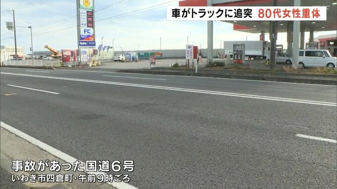 25日、福島県いわき市の国道で、軽乗用車が大型トラックに追突し、軽乗用車を運転していた80代の女性が意識不明の重体となっています。