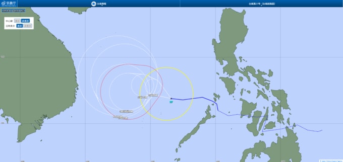 この情報によりますと、きのう25日(火)の午後9時にフィリピンの南西部のスル海で発生が確認された台風第27号(コト)は、きょう26日正午現在、大陸方面に向かって西に時速25kmの速さで進んでいます。