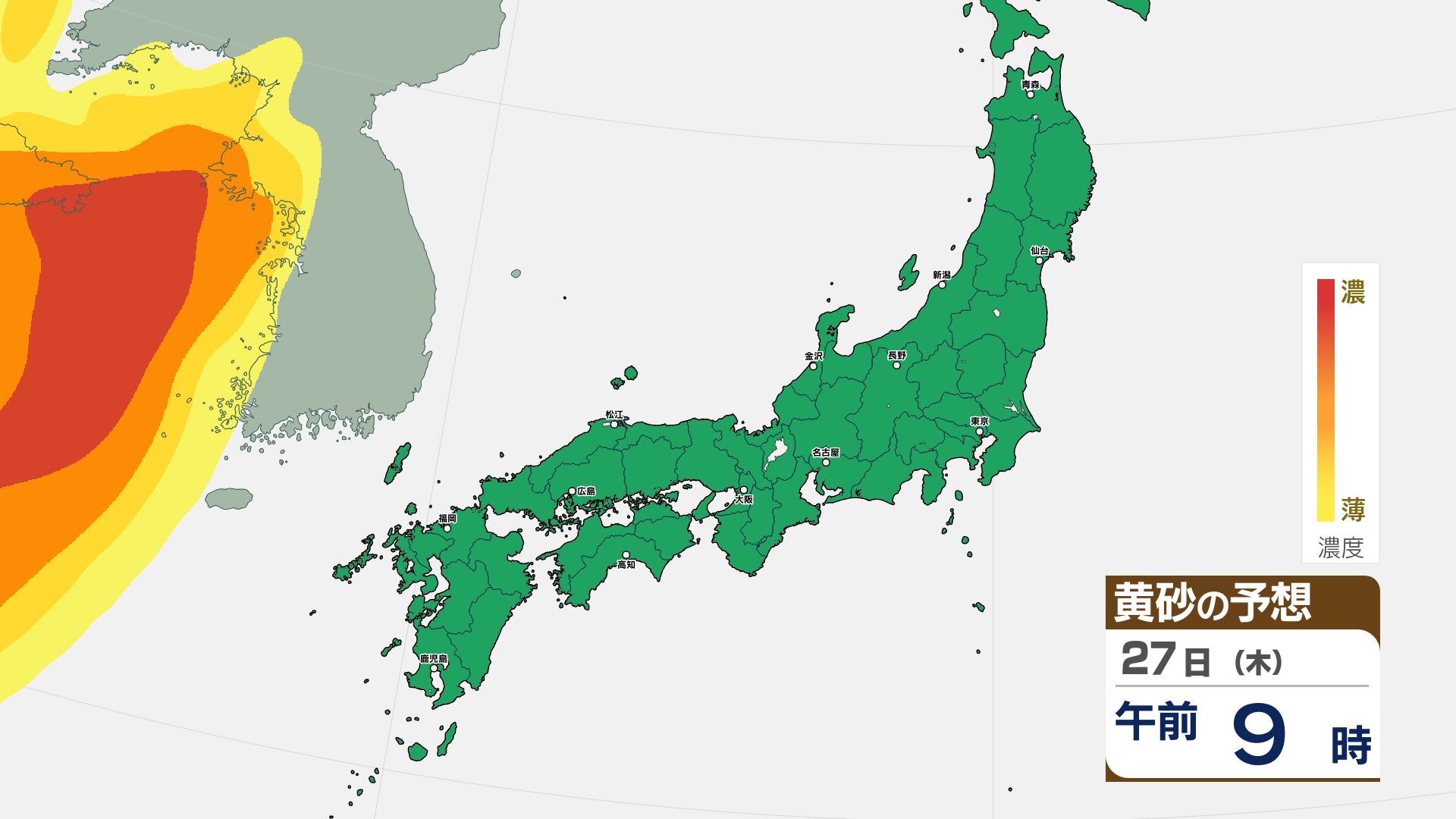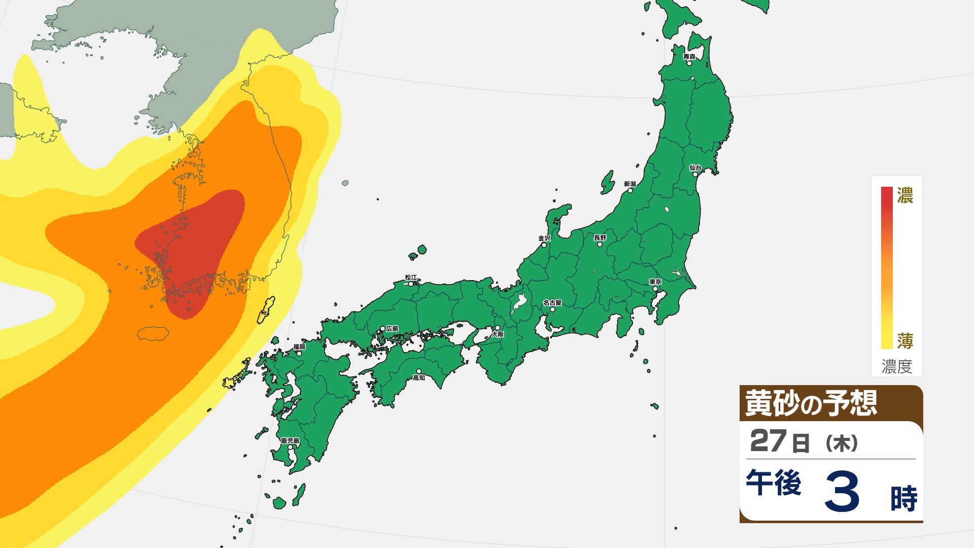【黄砂情報】27日~28日にかけて黄砂に注意 27日夜は西日本…28日は全国的に飛来の可能性 【シミュレーション掲載】