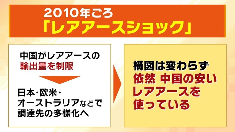 これをきっかけに「中国に頼りすぎるのは良くない」と、日本・欧米・豪州などは調達先の多様化を目指しましたが、安さには勝てず、依然として中国の安いレアアースを使っている状況です。