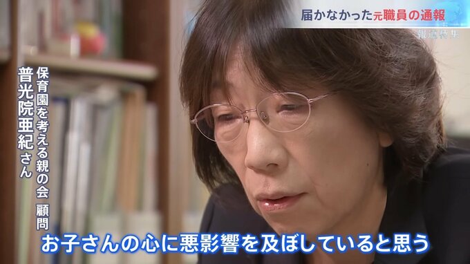 「泣いているお子さんに、ものすごい乱暴な言葉で追い詰めるようなところが、とても心が痛む。お子さんの心に悪影響を及ぼしていると思う。不適切な保育、今、虐待とも言うが、そうなっていると思う。子どもの成長を遅らせたり、先々のコンプレックスにつながったりする」