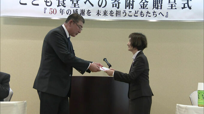 寄付は組合の設立50周年にあわせ地域貢献の一環として行われたもので、県内の107の子ども食堂に10万円ずつ贈られます。