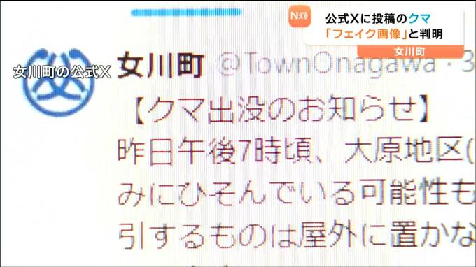 女川町によりますと、その後、フェイク画像だったと作成者本人から申し出があり、偽物と判明したということです。町は「住民の危険回避を優先してお知らせしましたが、混乱や不安を与えお詫び申し上げます」とのコメントを投稿すると共にフェイクのクマ画像を削除しています。